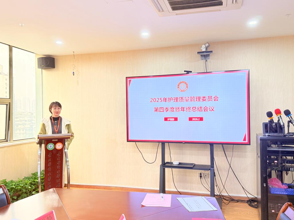 吴姗作年度护理质控工作报告,详细汇报了2025年度护理质控工作达标情况、委员会人员组成调整、国家及省级考核数据上报、当前面临的问题与下一步工作计划等内容,并对护理质量管理、护理人员在职培训及护理教学工作等方面的成效进行了深入剖析,为进一步提升护理质量与教学水平奠定了基础。