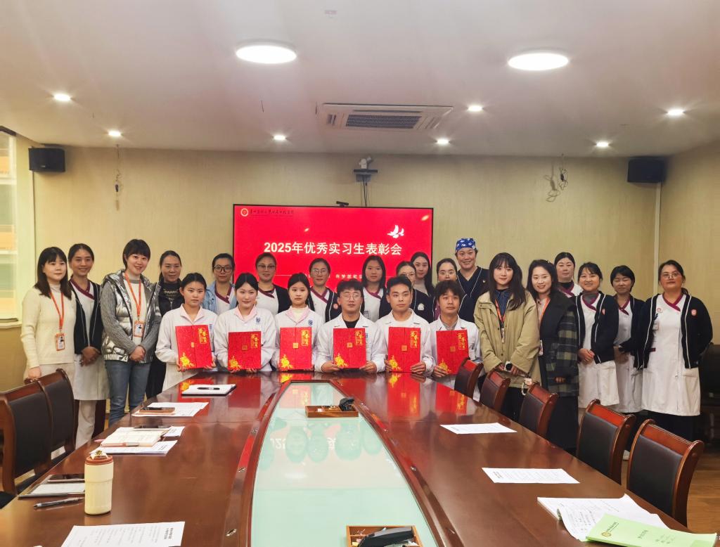 会议同时对2025年度6名优秀实习生进行了表彰,获奖实习生回顾了从初入临床到逐步成长的经历,衷心感谢医院提供的实践平台及带教老师的悉心指导,表示通过实习不仅巩固了专业知识和技能,更加深了对护理工作崇高内涵的理解,包括对生命的敬畏、对责任的担当及对人文关怀的践行。