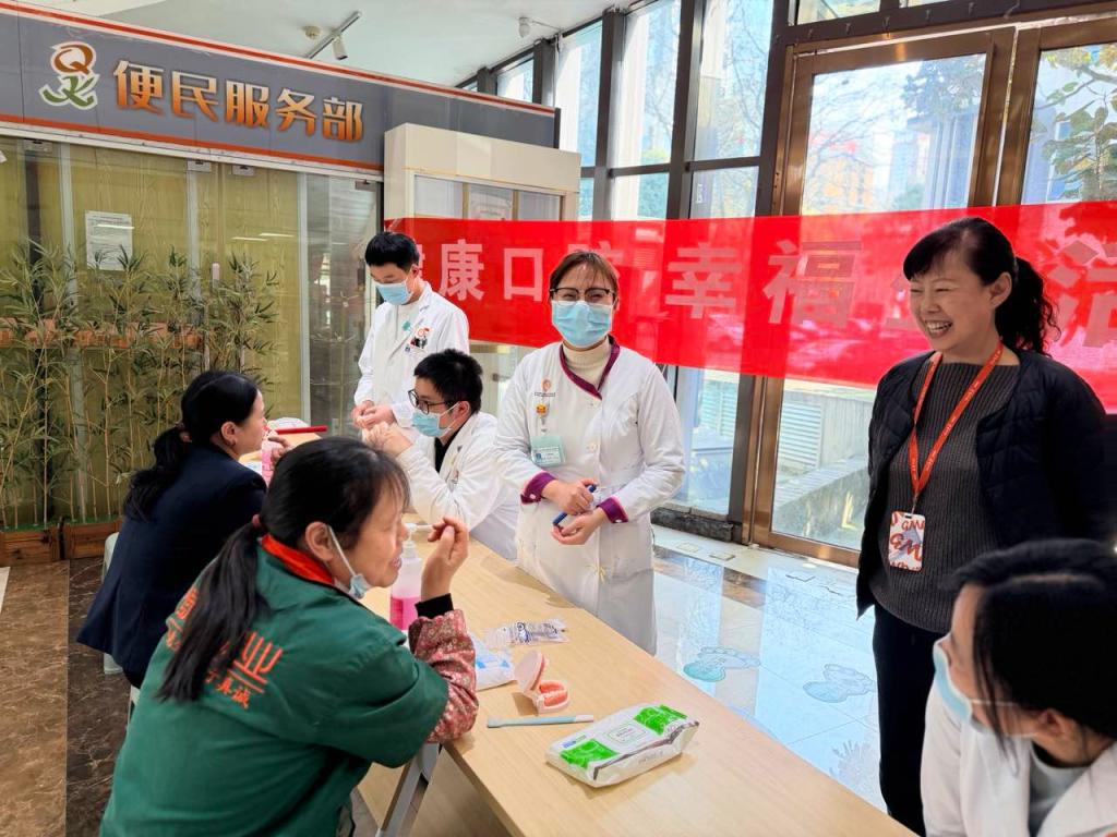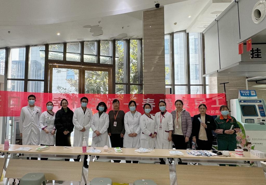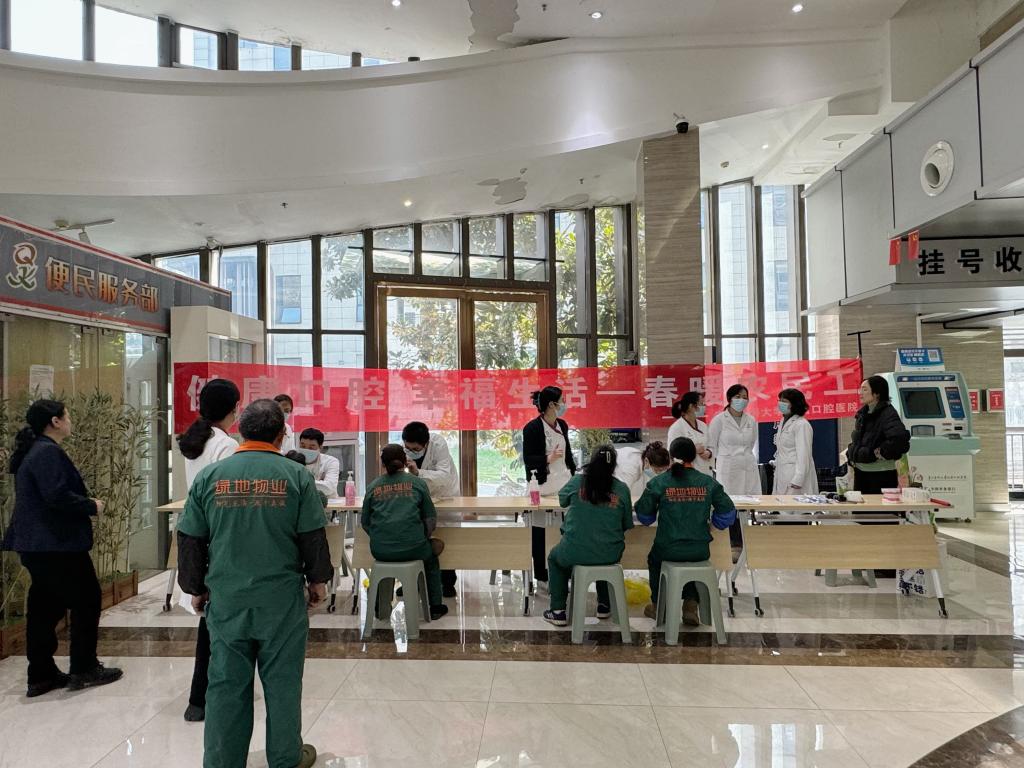 联合贵州省健康管理师协会、贵州绿地物业管理有限责任公司在门诊大厅开展“健康口腔 幸福生活——春暖农民工” 为主题的口腔义诊活动,以专业医疗服务与暖心健康关怀,为农民工群体及广大群众筑牢口腔健康屏障。
