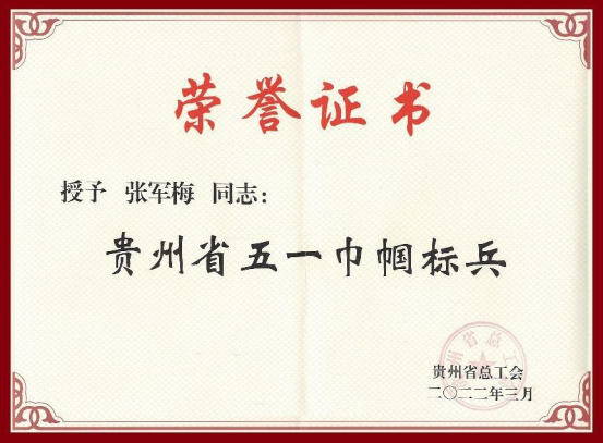 党委书记张军梅荣获2022年度贵州省“五一巾帼标兵”称号。自任党委书记以来,她以强烈的责任感和使命感担当作为,与院党政领导班子一起带领全院教职医护员工生“听党话、感党恩、跟党走”,始终不忘初心使命,坚持“公立医院要公益服务”办院理念,在党的建设、精神文化建设、医德医风、教学科研、脱贫攻坚等方面做出了突出成绩,推动全院高质量发展和加快推进健康贵州建设作出新的贡献