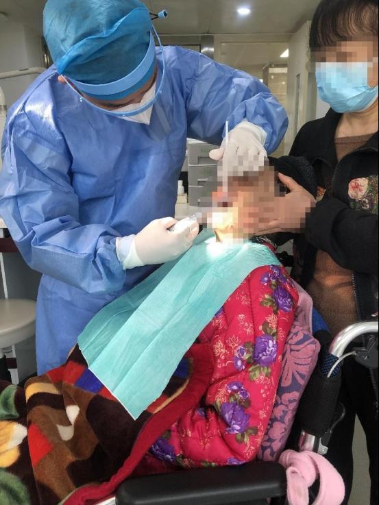 考虑到患者年龄较大身体素质欠佳,容易发生感染影响生活质量,医务科负责人高琼及首诊医师陈锐再次亲自上门进行全身和局部检查,患者精神状态良好,拔牙创愈合良好,无感染迹象。