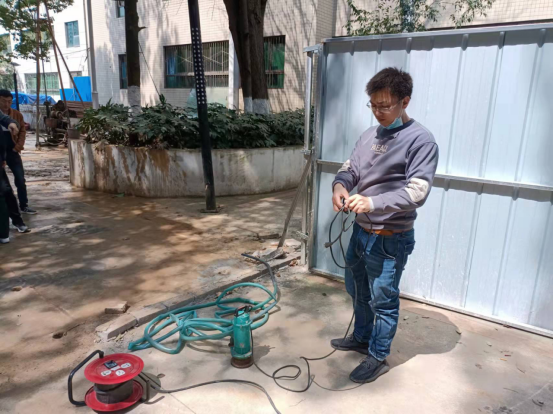 十二时,抢修设备到位,所有人员立即投入到抢修工作当中。陈刚拿来管道施工图纸,与现场抢修人员共同制定开挖方案;杨标布置抽水机排水,为封堵管道扫清障碍;汪飞宇带来了饮水和零食,给还未用餐的工作人员带来补给;绿地物业丁继先、龙宽国等同志大力协助设备后勤管理科在现场搭建出了一条从学校到医院的供水“生命线”,极大缓解了供水困境,为抢修争取了时间。