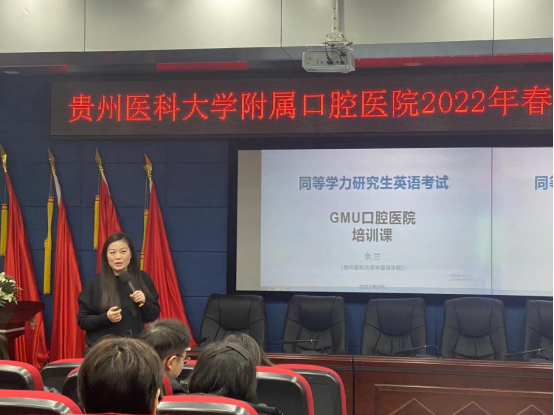 副教授、博士余兰授课,全院报名同等学力和有意提升英语水平的教职医护员工共58人参加此次培训。