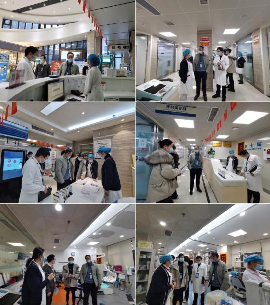 检查组一行前后走访检查了医院各科室,重点对预检分诊点、候诊等公共区域、口腔综合急诊科、手术室、病房及主要临床科室、医技科室进行了疫情防控检查工作并指导工作。