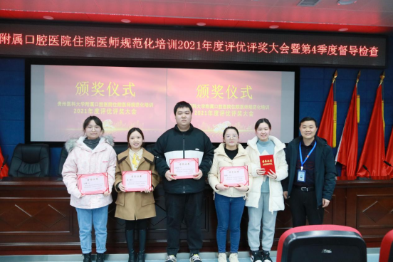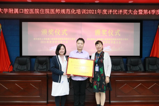 会前,各专业基地参照《小艾电竞官方网站住院医师规范化培训年度评优评奖实施办法(试行)》推选出了2021年度“优秀指导老师”5人、“优秀带教老师”6人、“优秀住院医师”5人,并在会上围绕2021年评估检查的整改情况、2022年参加结业住院医师过程考核初审结果、年度考核、结业考核和执医考试通过率、年度业务水平测试等工作内容进行汇报。院领导在听取汇报后,一对一对各专业基地点评、打分。其中,口腔颌面外科专业基地以最高分获得小艾电竞