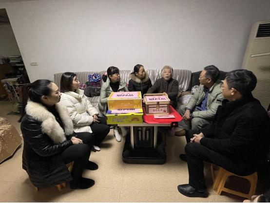 党委书记张军梅、副院长王永、副院长唐正龙、党委副书记何雨羲带领牙周黏膜科主任蔡扬及职能科室代表到91岁口腔行业前辈吕德良老师家中走访慰问,并送上慰问品与新春祝福。