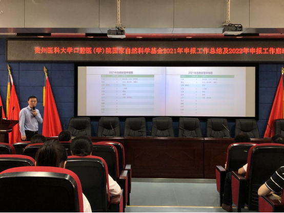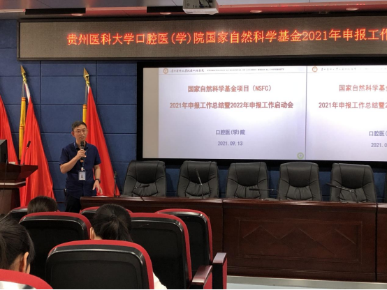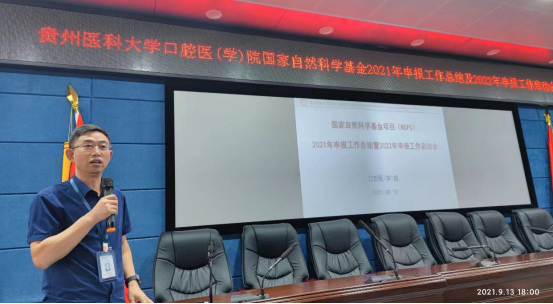 共提交了12份申报书,最终获得2项立项,分别是口腔修复种植科博士陈河林、口腔颌面外科博士王宇的项目,同时对2022年申报工作部署以及申报的重要节点做出了说明。陈河林分享了国家自然科学基金申报的心得,表示申报书的修改应根据基金专家意见打磨,要重视同行评价,前期更要深度挖掘、查阅文献。王宇在分享中强调,需不断修改,精益求精,重视机制研究和预实验。