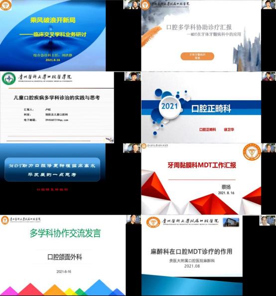 口腔综合急诊科主任刘洪静、牙体牙髓科主任梁燕、预防和儿童口腔科主任副卢虹、口腔正畸科主任徐卫华、口腔修复种植科主任董强、牙周黏膜科主任蔡扬、口腔颌面外科主任吴亚东、麻醉科医生黄时富分别从科室涉及交叉业务内容、已达成MDT业务、拟增加的涉及交叉学科诊疗内容和需求、拟建立交叉学科人员梯队和运行模式等方面作交流分享。八位专家从专业角度出发,通过高水平、专业性的讲解,为线上线下一百七十余名职工带来精彩纷呈的展示汇报。专家们表示对医院MDT发展充满信心,定与兄弟科室、合作医院携手并进,造福病患,共创新局。