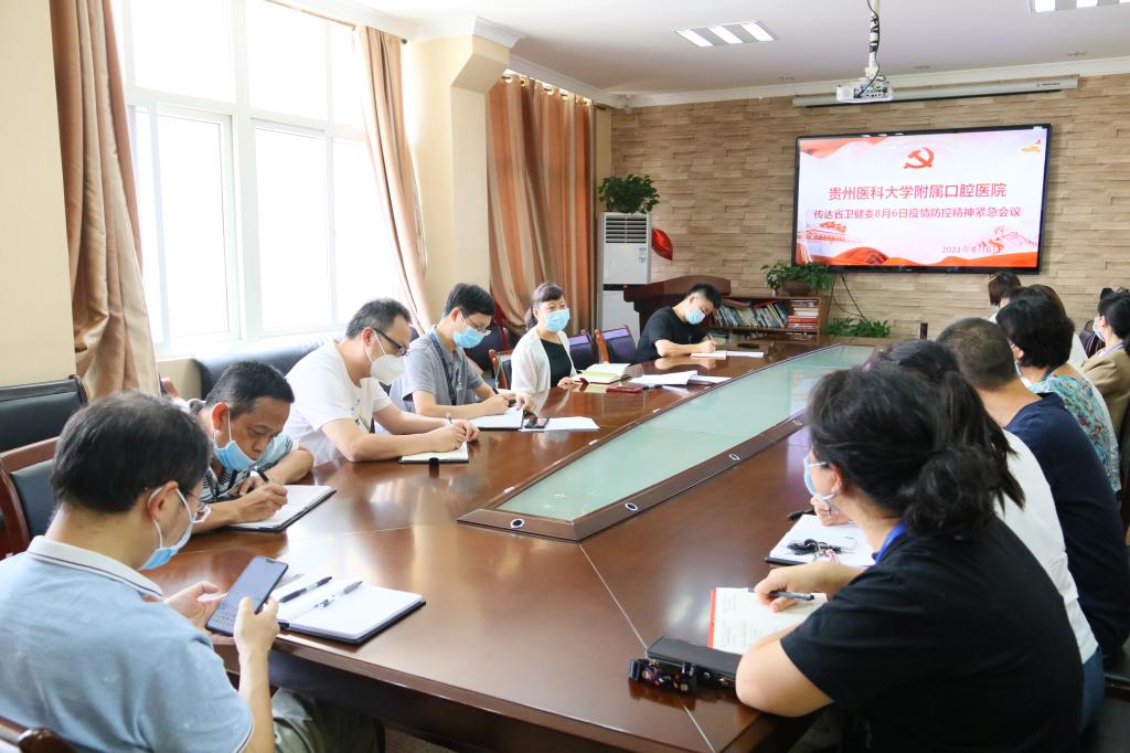 8月6日,口腔医(学)院在行政楼五楼会议室传达省卫健委疫情防控紧急会议精神。院党委书记张军梅主持会议,并就医院下一步疫情防控工作安排部署。各行政职能部门负责人参加会议。