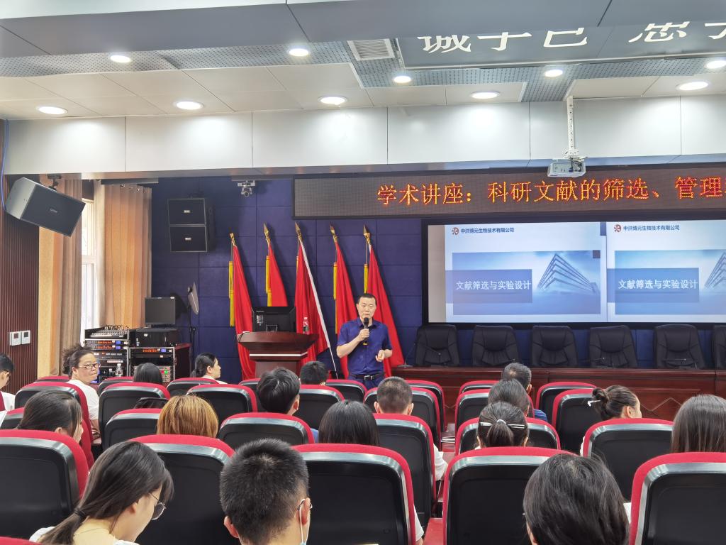 邀请中洪博元生物技术部总监杨霖开展了题为“科研文献的筛选、管理和阅读技巧”的讲座。讲座在行政楼五楼学术报告厅举行,全体研究生、部分青年教师参加本次讲座。研究生科研管理科科长廖健主持讲座。