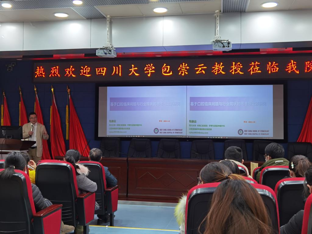 开展题为“从口腔临床问题到行业现状的思考与立项研究”的学术讲座。讲座在行政楼五楼学术报告厅举行,由口腔医(学)院副院长王永主持,副院长唐正龙、各科室科研教学负责人、科研骨干、研究生、规培生等100余人参加讲座。