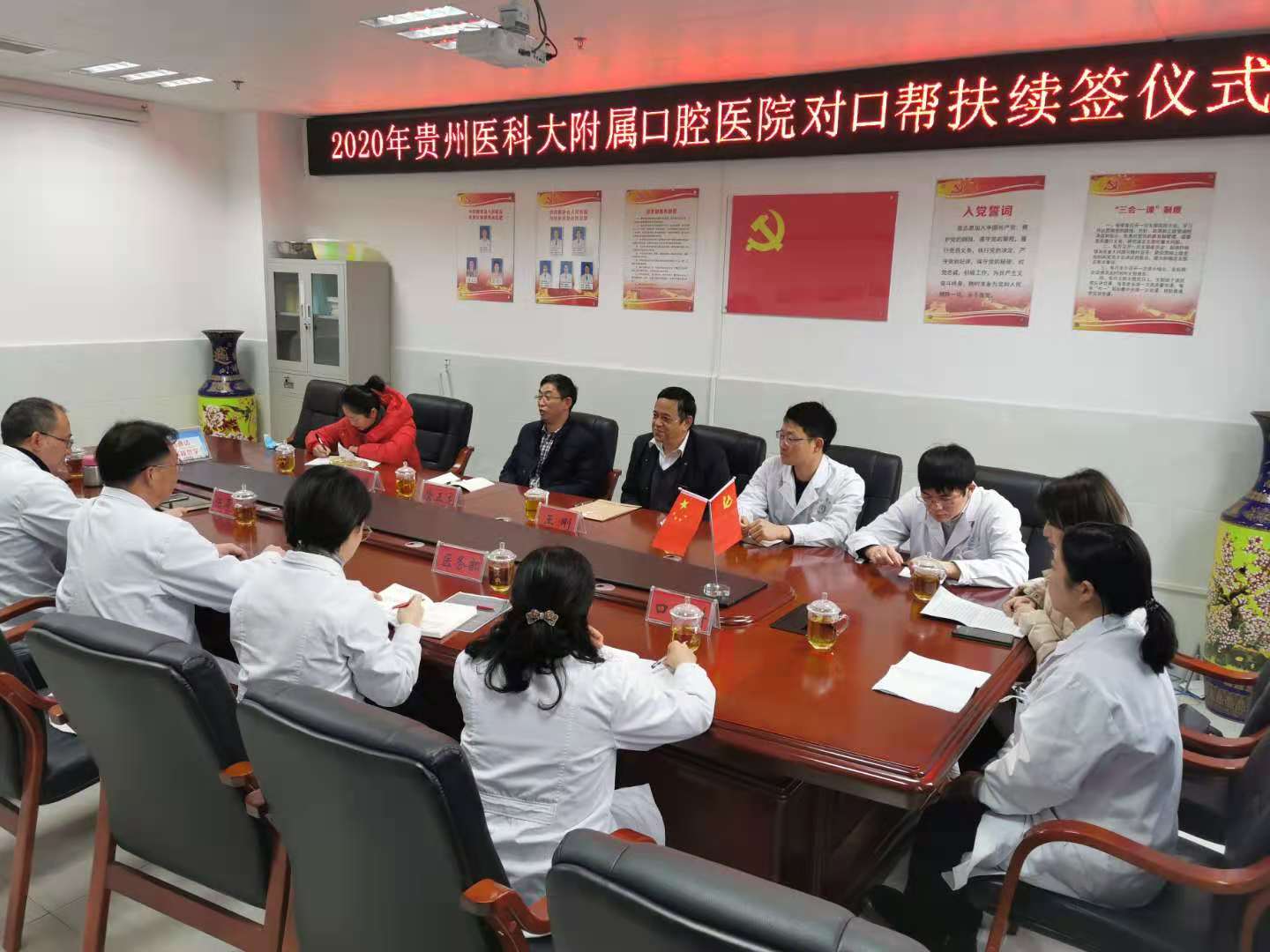 根据国家卫生健康委员会和贵州省卫生健康委员会对医疗机构对口帮扶工作的具体细则要求,12月4日,小艾电竞官方网站(后文简称口腔医院)应桐梓县人民医院邀请,由副院长唐正龙、医务科主任王刚及科员梁婷一行三人前往桐梓召开对口帮扶工作座谈会,并签订第二期对口帮扶协议。参会人员有口腔医院对口帮扶医师王珣、孙昆俊、李毓勤、帅宾宾和桐梓县人民医院党委书记罗昭旗、口腔科主任杨道芬、医务科主任金畅及护理部工作人员。座谈会由桐梓县人民医院院长陈寿川主持。