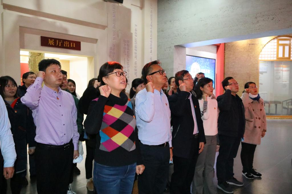 最后,全体人员在党委书记张军梅的领誓下,重温了入党誓词,大家举起右手,在党旗下集体庄严宣誓,以掷地有声的铮铮誓言表达了为共产主义事业奋斗终身的决心。