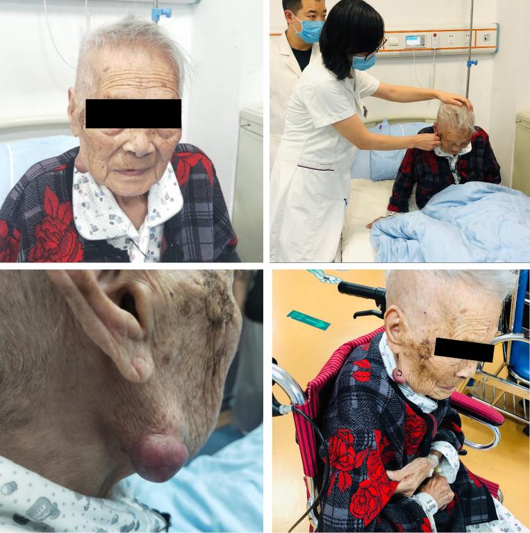 。门诊以“右面部包块”收治入院,当时这位近百岁的老人由家属推轮椅入院,有高血压史,副院长唐正龙及团队医护人员除对患者病情进行全面的诊疗评估,给予入院常规检查外,还进行了监测血压及防褥护理等治疗措施。经口腔颌面外科、麻醉科、手术室通力合作,完善术前准备,制定周密计划,医护团队成功为患者进行手术治疗,术后患者生命体征平稳。