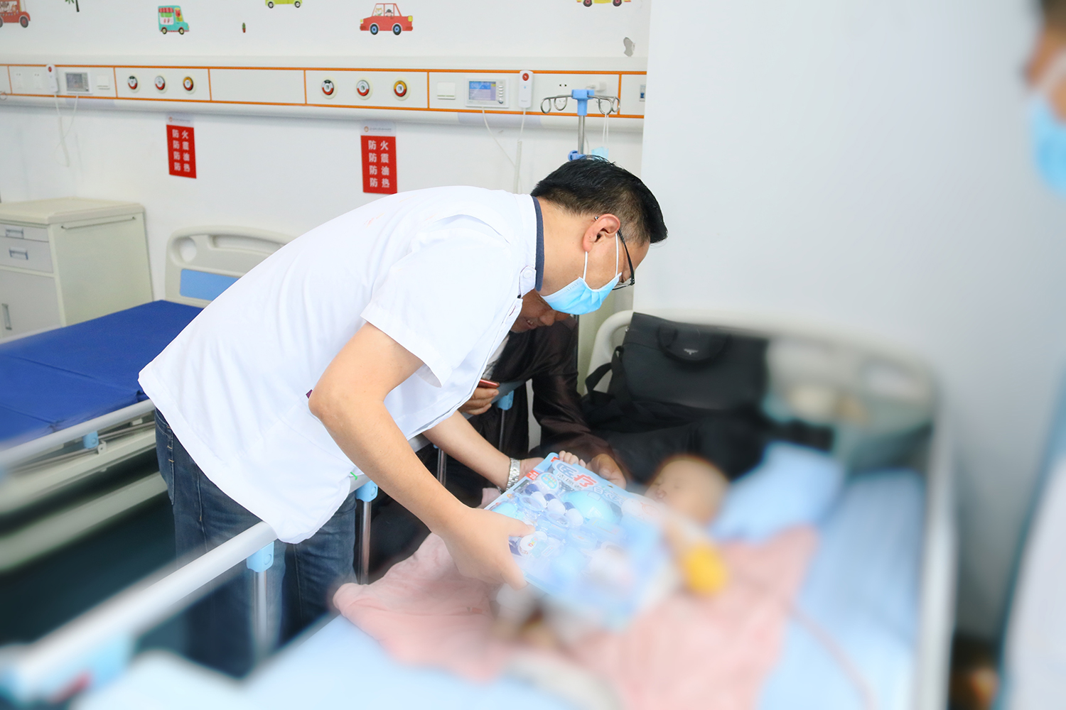 党委副书记、院长马洪代表医院党政领导班子与工会主席杨蕾及相关部门同志一起慰问住院患儿,在疫情防控的特殊时期,为他们送上节日的祝福。