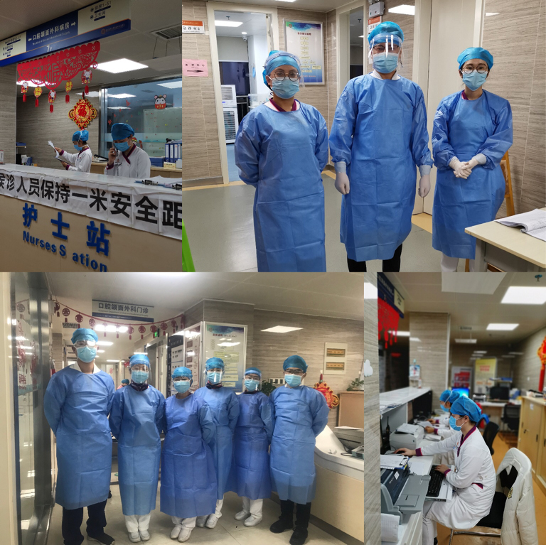 担使命,压实疫情防控的各项责任。自新冠肺炎疫情爆发以来,科室抓实疫情防控工作,重点排查外来人员,非就诊患者家属一律不得入院,要求每位就诊患者按规定进行体温测试,体温正常的经登记后方可进入就诊。疫情期间,口腔颌面外科临床一线医护人员积极备战,在岗位上执着坚守,保障广大人民身体健康及生命安全。口腔颌面外科及时部署门诊开诊,确保门诊医护人员时刻在岗处理应急情况;对于病情平稳、可择期诊治的患者,为避免出现疫情爆发,通过现场一对一沟通、网络、微信等各种途径为广大患者解疑答惑,为患者的生命安全及身体健康保驾护航,始终践行医护人员的初心使命。