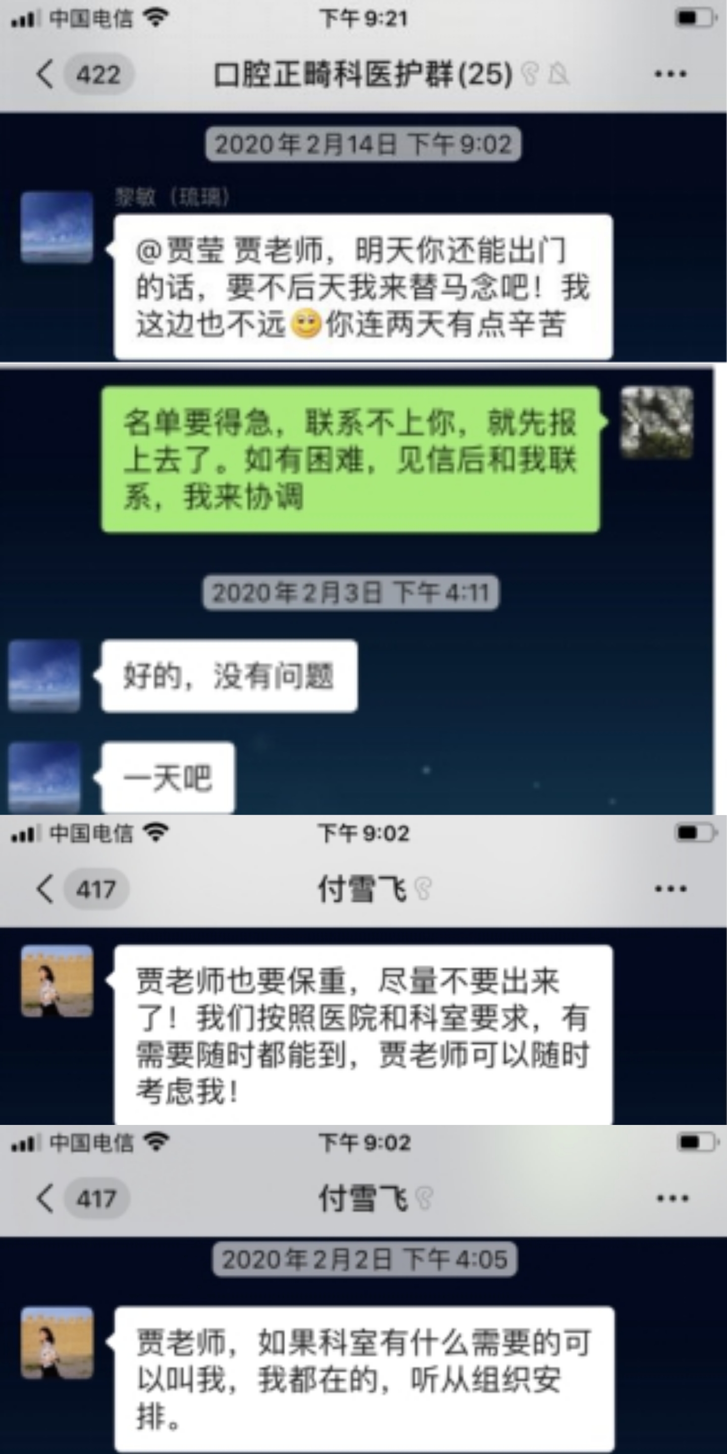 抗疫期间,科室负责人开启霸屏工作模式,在科群WeChat发布信息1000余条。保证所有通知第一时间传达至科室每一位成员,保证一小时内完成相关工作部署并启动执行。无论党群,不分长幼,对于工作,看到的永远是支持与配合!
