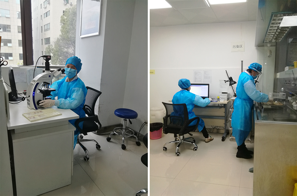 疫情期间,病理科实行值班制,在科主任的带领下,按照疫情期间病理科工作流程及暂行规定作了详细安排,自2020年2月3日起,安排工作人员轮班,保证每天科室都有人在岗值班,其他同事电话值班,24小时开机,保证随叫随到。为了保证工作效率和工作质量,让患者及时拿到病理报告,也为了更好地服务一线科室,病理科在工作中根据需求严格规范开展常规病理,术中冰冻及DNA倍体检测及细胞学检查。同时,为满足临床及病患需要,针对院外疑难病例,科室及时组织科内会诊,明确诊断。当班人员严格按照有关新冠病毒防治方案,并结合《小艾电竞官方网站病理科疫情期间工作计划》,对接收、处理标本、取材、切片及诊断等过程进行处理,同时每天对科室设备及环境进行消毒,并做好记录。