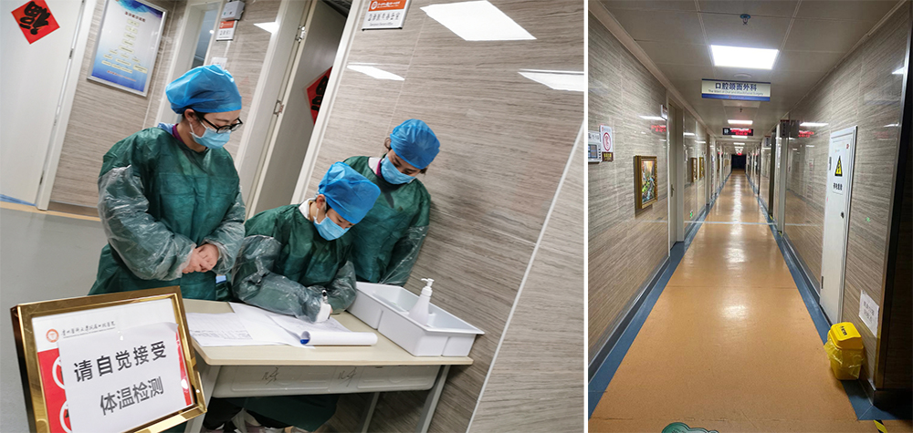 8:00,与以往不同,从第一个面带愁容的病人跨入医院,为这紧张而又井然有序的一天拉开序幕。预检、分诊……,影像科、检验科、药剂科等科室坚守岗位,后勤行政部门为临床一线工作做好充分的后勤保障。
