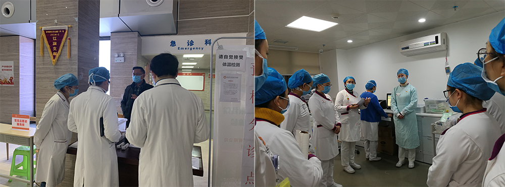 次日8:00,夜班急诊的当班医护正在交接班,对于他们来说,昨天工作才刚刚结束,新的一天已然来临,护理部组织护理人员进行新型冠状病毒防护知识的相关培训、院领导巡查疫情防控工作仍在进行……