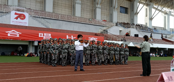 团委、2019级辅导员刘逸洲到场为新生鼓励加油。此次军歌合唱比赛以“中华人民共和国成立70周年”为主题,表达了对建国70周年的深切祝福。