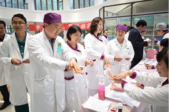 为提高全院职工的感控意识,切实保障患者安全,感染管理科于5月13日至14日在医院二楼门诊大厅开展了为期两天的“手卫生”专题活动。活动当天,唐正龙副院长代表医院党政领导班子为本次活动开幕致辞,希望通过此次活动增强全院职工无菌观念和预防控制医院感染,并预祝活动取得圆满成功。