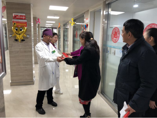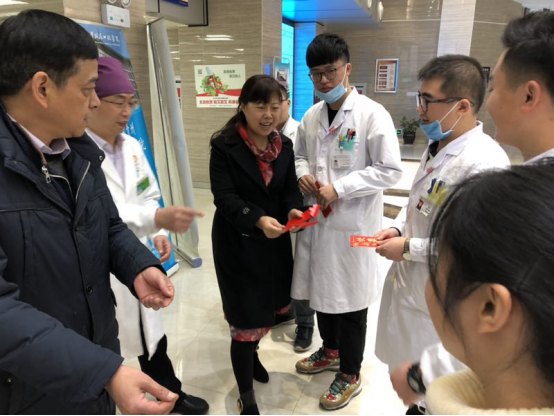 党委书记张军梅、副院长唐正龙带队,对坚持在一线值班的医务人员进行慰问。