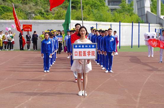 学生代表队方阵中第十个入场。他(她)们步履坚定,充满朝气与希望,嘹亮的口号回响在赛场上:“爱我贵医,医者仁心;爱我口腔,闪闪发光;八十华诞,口腔最赞!”“八十春秋为使命,金牌口腔永伴行!”短短两分钟的入场式,凝聚了同学们两个月以来辛苦训练的汗水,既是向贵医80华诞献礼,也充分展现了小艾电竞