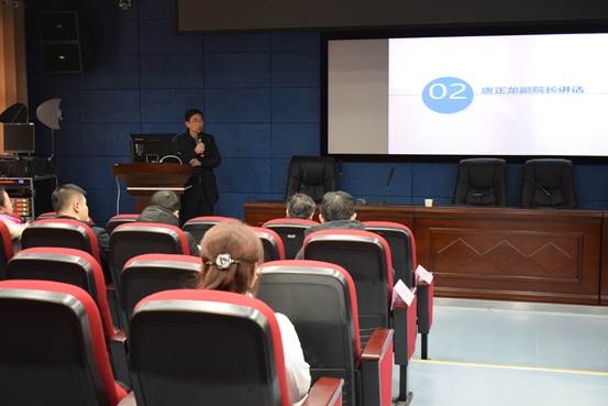 会议由院工会副主席杨蕾主持,副院长唐正龙讲话,他对工会会员代表大会的召开表示祝贺,并强调了工会的职能,希望新一任工会委员能发挥桥梁和纽带作用,全心全意为职工谋福利。