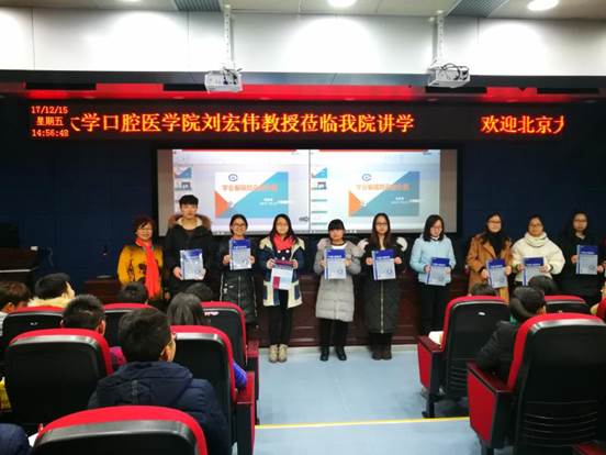 研究生和本科生作了中华口腔医学会学生会员发展和学会期刊杂志情况的专题讲座,并为参与网络答题的获奖学生颁发奖品。