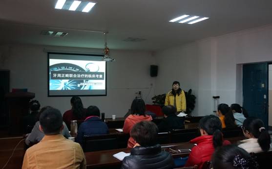 正畸学教研室徐卫华主任主持,党委书记张军梅致辞并讲话。段培佳教授就“牙周病患者的正畸治疗方法及手段”进行了详细讲解,结合相关病例介绍了牙周病患者正畸治疗的操作流程和技术特点,并详细解释了其中的注意事项。授课结束后,参加学习的人员就相关问题与段培佳教授进行了热烈的讨论。