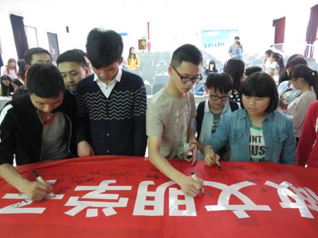 首先,编辑部成员杨世榕带领大家了解雷锋的生平,紧接着宣传部成员司东伟向同学们介绍了雷锋无私助人的感人事迹,然后学生会干部李长菁传扬无私奉献的雷锋精神。最后在签名仪式上,大家纷纷在宣扬雷锋精神的横幅上签上自己的名字。学雷锋精神,做文明学子,承优良传统,献爱心感恩。