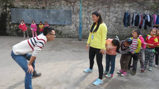 志愿者们亲切地与小朋友们讲故事,一些志愿者们还陪小朋友们踢起了毽子、打起了乒乓球。随后,志愿者们两人一组,教各班同学唱歌、与小朋友们猜谜语。最后志愿者带领小朋友们在操场上玩起了老鹰捉小鸡等游戏,小朋友们的热情活泼、天真可爱也深深感染着每一位志愿者们,操场上充满着欢声笑语。随后,志愿者们向各班的小朋友发放了棉袜等生活学习用品。