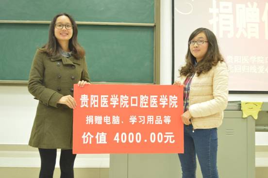 2013级刘卓同学与受捐赠方代表即北回归线贵州分会举行了隆重的捐赠仪式。