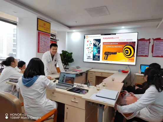 活动期间,药剂科在医院张贴了宣传海报,组织药师观看了“2022年提高抗微生物药物认识周”启动仪式,学习了“抗微生物药物认识周”宣传片“小药片,大民生”并分享了内容与体会。门诊药师进一步强化服务理念,围绕抗菌药物等相关内容向患者作科普,并耐心讲解非甾体抗炎药与抗菌药物的区别,帮助患者了解抗菌药物,不擅自选用抗菌药物,倡导凭处方服用药物、不随意停用抗菌药物等。
