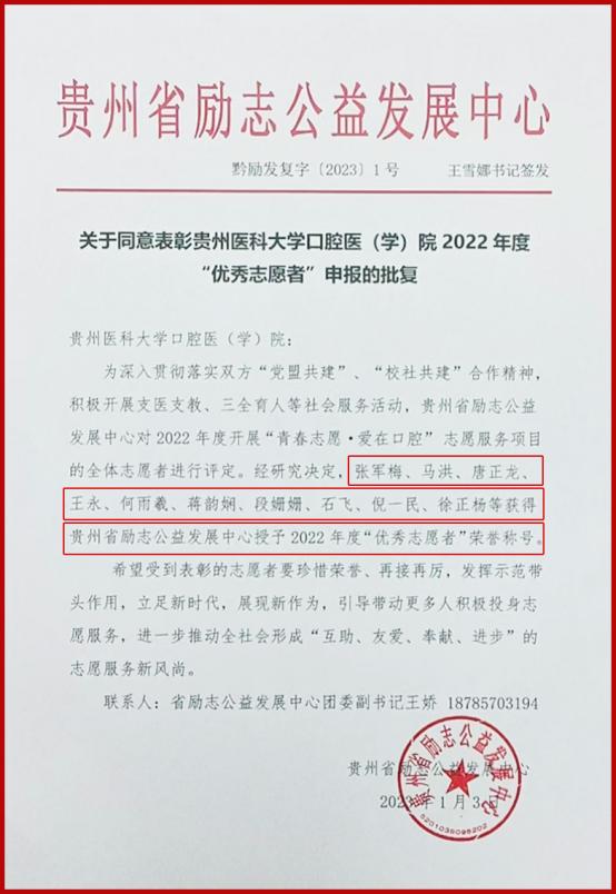 、附属口腔医院(后文简称“口腔医(学)院”)共10人荣获大会2022年度“优秀志愿者”荣誉称号,院党委副书记何雨羲、副院长王永、团委副书记蒋韵娴受邀带队参加表彰大会。
