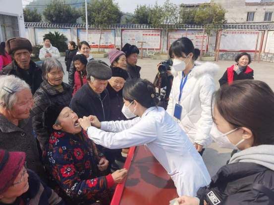 医护人员于现场开展口腔义诊,为当地老年人进行详细的口腔检查,提供诊断意见,并耐心讲解口腔健康标准,认真宣教口腔防治知识,将口腔健康送到百姓身边。