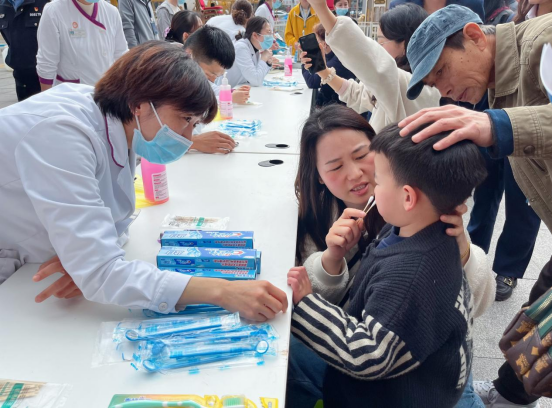 预防及儿童口腔科主任卢虹、牙周黏膜科博士李志远、口腔综合急诊科医师苏晗娇为广大人民群众进行免费口腔体检和咨询,同时护理人员为群众进行口腔科普宣教,指导正确的刷牙方式,测量血压,并一一耐心解答群众的问题,让群众亲身感受口腔健康的重要性。活动上还免费发放了口腔健康宣传手册及牙膏、牙刷等礼品。据统计,此次活动服务群众200余人,免费义诊150余人,发放健康科普手册200余册。