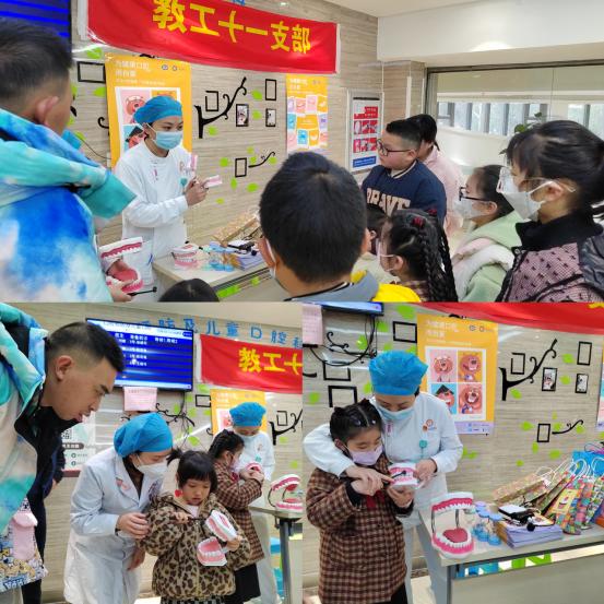 教工第十一(预防及儿童口腔)党支部组织开展了“为健康口腔而自豪”系列活动,支部全体党员及所在科室全体医护走进社区和校园,以义诊、护牙小课堂等形式,免费为群众开展口腔健康检查,并发放宣传资料和护牙大礼包,让“为健康口腔而自豪”的口号深入人心。