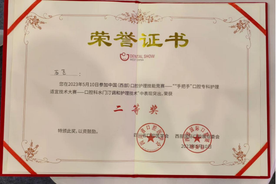 在“口腔专科护理适宜技术大赛——口腔科水门汀调和护理技术”中,石飞凭借娴熟的操作技能在众多参赛选手中脱颖而出,荣获二等奖,充分展现了小艾电竞