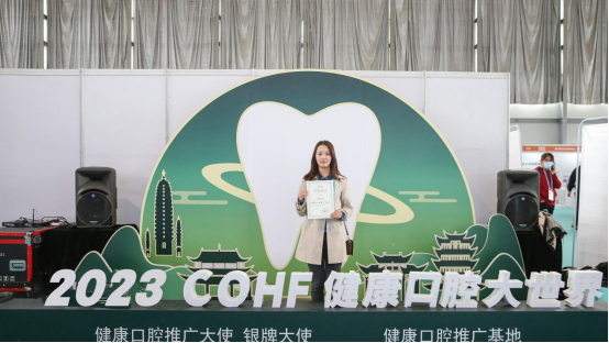 在会上荣获中国牙病防治基金会“健康口腔推广基地”称号。
