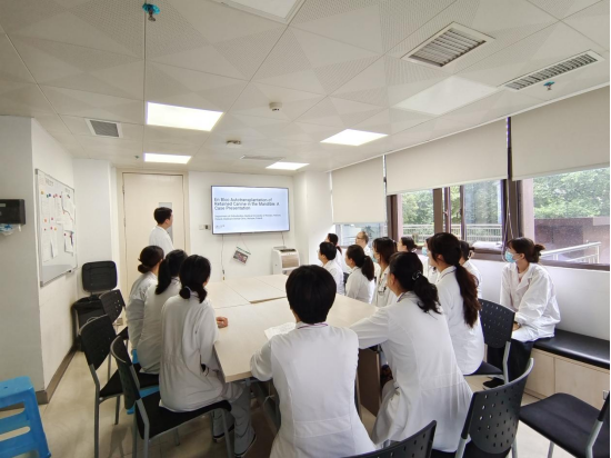 口腔正畸科始终高度重视研究生、规培生、进修生、实习生系统培养与教育。为更好地让学生融入科室,根据科室工作特点,结合临床工作性质,要求学生提前准备文献内容,在晨交班当天汇报,让大家共同学习、点评、交流,在足不出院的情况下,就可以了解、学习国内外最新正畸矫治技术,为解决临床问题、论文写作及申请科研课题方面提供新思路和灵感。