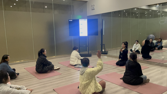 此次特别聘请了专业的瑜伽教练。活动参与者在瑜伽教练的指导下,从基本的呼吸法、站、坐、躺等动作开始练习,让自己进入放松状态,身心得到舒展,享受“瑜伽”训练带来的宁静,达到“愉悦身心”的预期效果。活动现场还设置了瑜伽知识问答环节,大家积极抢答,获得了趣味奖品,气氛十分热烈。