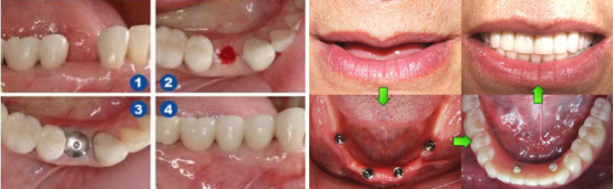 种植义齿就是将纯钛金属的螺丝(一般称做种植体)植入牙槽骨内。根据患者失牙后牙槽骨及颌骨的变化,选用合适的种植体植入颌骨内作为人造牙根,起支持固位作用。在其露出口腔内的种植桩上安装牙冠,承担咀嚼作用,获得与自体牙相似的形态及功能。