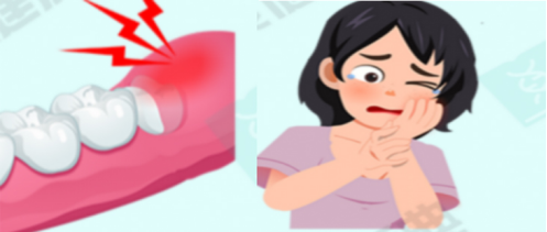 2、龋齿:阻生的智齿与第二磨牙之间容易积存食物残渣,而且不易清洁,很容易形成智齿和第二磨牙的龋齿而发生疼痛。