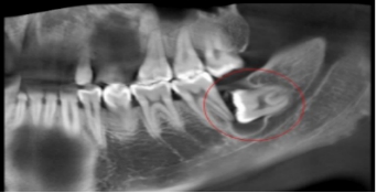 7、智齿周围囊性病变:下颌阻生的智齿常常形成囊肿,引起骨头吸收。