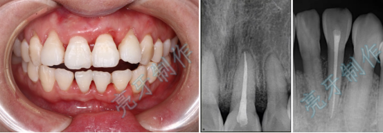 病例一:上门牙外伤,牙齿脱落;再植治疗3个月后,恢复良好。