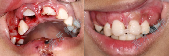 病例五:牙齿嵌入牙槽骨,牙龈撕裂,治疗后,恢复了自信和美丽的笑容。