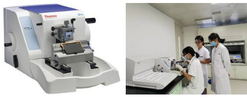 包埋好的蜡块在技术人员熟练的技术下切成2—5μm的白片。