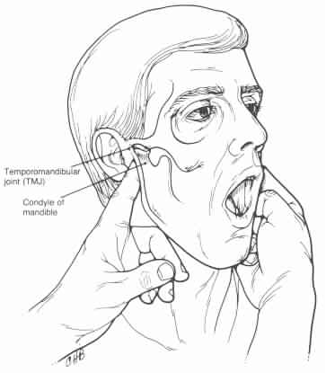 3、下颌运动异常:开口度异常(过大或过小)、开口型异常(偏斜或歪曲),以及开闭口运动中出现间歇性锁结(关节绞锁)。
